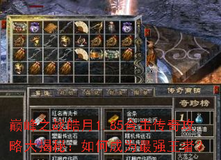 攻略大揭秘:如何成为最强王者?" alt="巅峰之战皓月1.85合击传奇攻略大揭秘:如何成为最强王者?" />